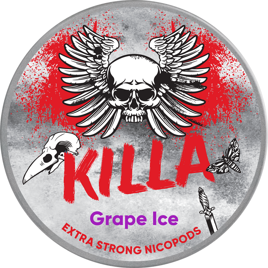 KILLA Grape Ice Slim Extra Strong Nicotine Pouches - enjoy a sweet taste of grape and mint. This tobacco-free Snus will blow you away.
